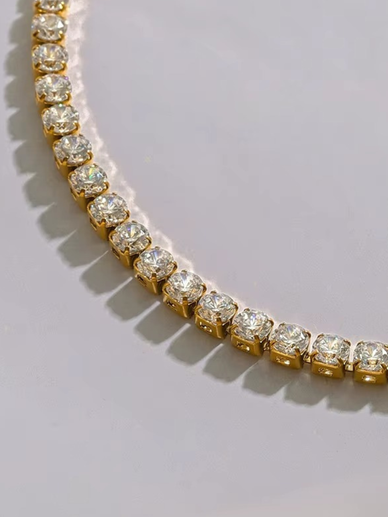 This Tennis necklace is waterproof, and tarnish-free, perfect to layer.