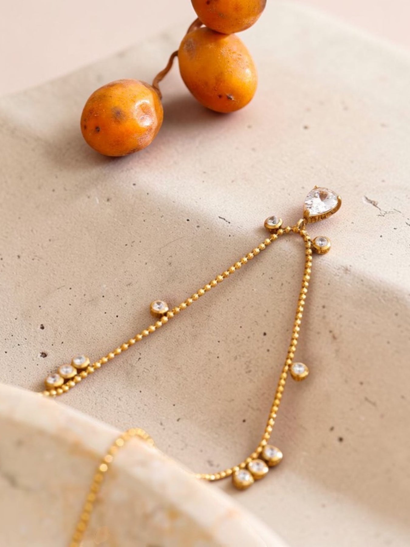 The Teardrop Charm Necklace is designed to capture attention with subtle brilliance. Featuring a sparkling teardrop crystal pendant complemented by delicate crystal accents along the chain, this necklace offers a graceful balance of elegance and charm.